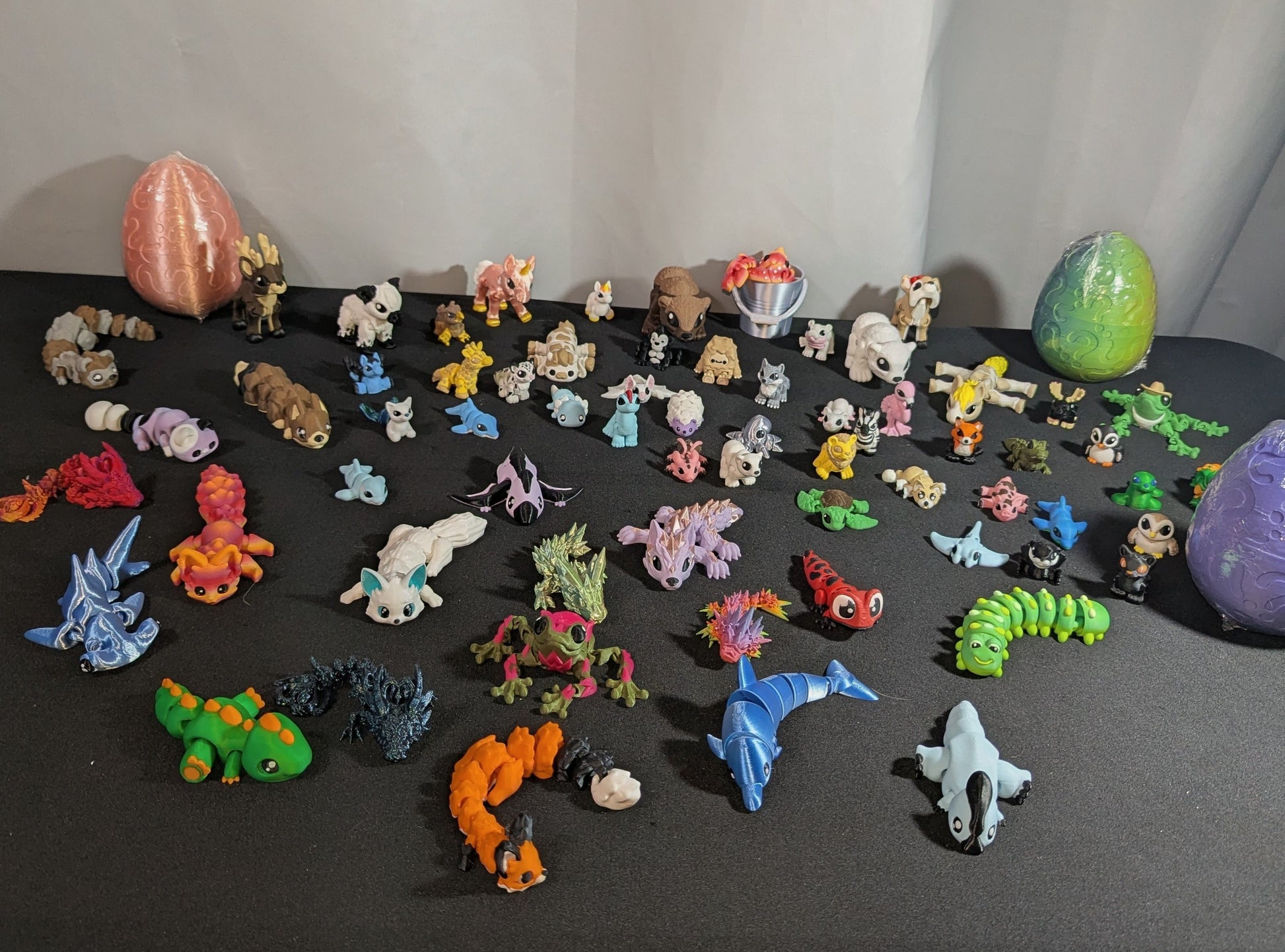 Looking for the ultimate surprise gift? These colorful mystery dragon eggs are packed with 3D-printed fun! Each egg comes shrink-wrapped and filled with a minimum of 4 unique fidget toys, including at least one Tadling or Dragon, one fidget toy, and a mix of other assorted creatures.